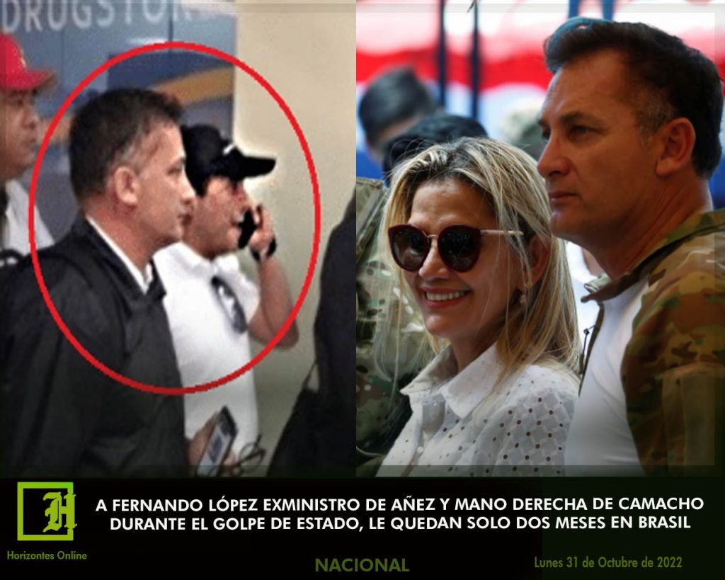 Fernando López exministro de Defensa de Jeanine Añez y cuota de poder del gobernador de Santa Cruz Fernando Camacho en el gobierno de facto, está acusado en Bolivia por terrorismo y conspiración en el golpe de Estado de 2019 y por la adquisición de material antimotín con presunto sobreprecio de $us 2,3 millones.