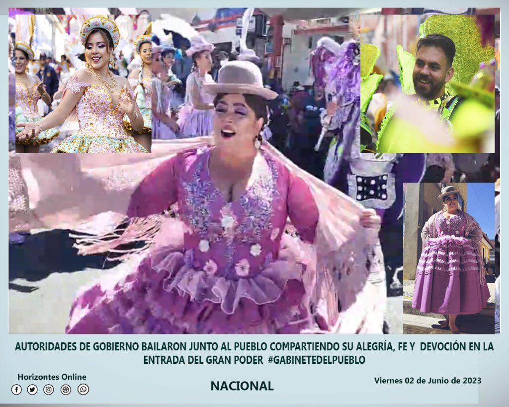 “Gracias Rosas de Viacha – Los Legítimos! ¡Gracias mi linda #LaPaz! Hoy cumplí uno de mis sueños, bailar #morenada en el Gran Poder! Soy una camba orgullosa de tener también raíces collas y de sentir vibrar mi sangre al ritmo de la morenada”. Escribió la Ministra de la Presidencia, de igual manera Gabriela Alcón Viceministra de Comunicación  afirmó “Me emociona ser parte de esta fiesta.