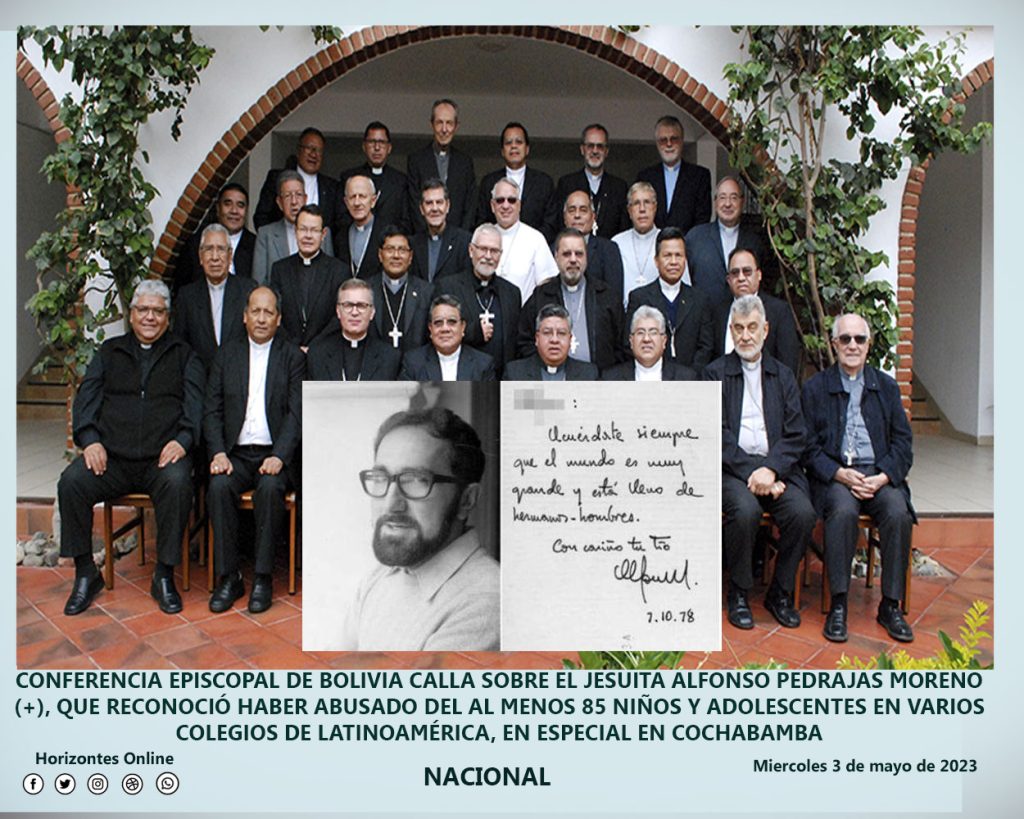 “Condenamos enérgicamente los hechos de pederastia acaecidos en el Colegio Juan XXIII de Villa Granada en Cochabamba, durante los años 1972-1987, cuyo autor confeso es el español Alfonso Pedrajas Moreno”, se lee en parte del documento.