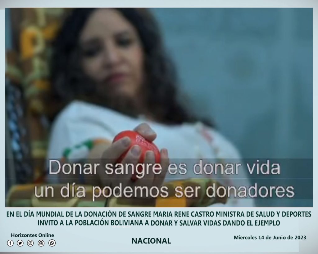 La ministra de Salud y Deportes María Rene Castro invitó a la población al noble gesto de donar sangre en el día mundial de la Donación de Sangre  con un mensaje en sus redes sociales “Donar sangre es un hábito en mi vida, lo tengo arraigado gracias al ejemplo de mi madre que es donadora regular. Hoy, al volver a donar, tengo presente más que nunca que donar es regalar vida, es un acto de amor”.