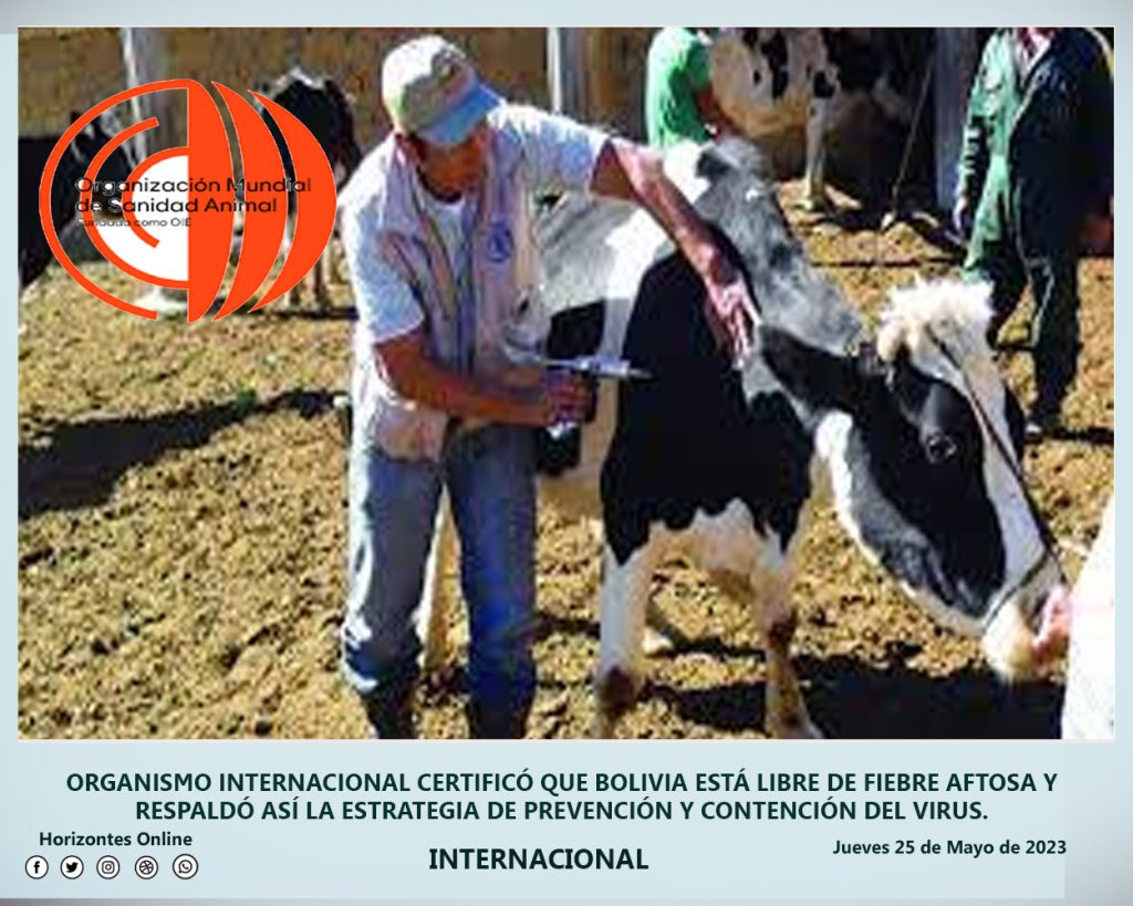 Un certificado oficial firmado hoy, jueves 25 de mayo en París, Francia, actualiza el “estatus de Bolivia respecto a la fiebre aftosa”.