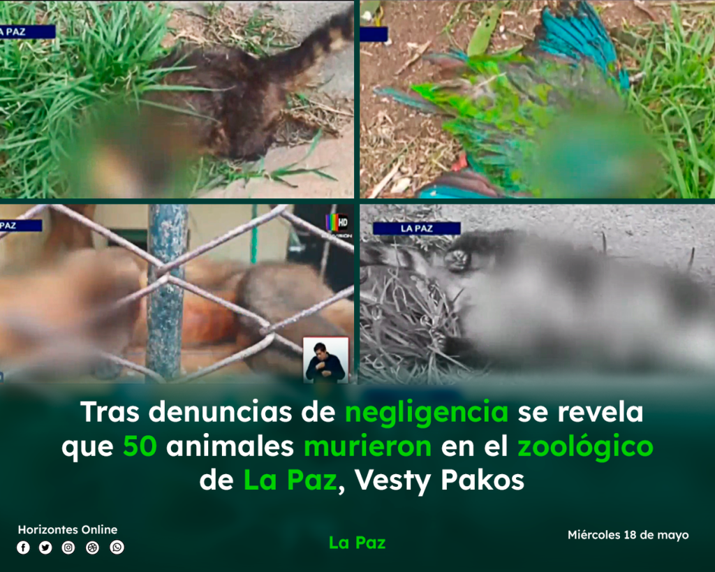 Tras conocerse las denuncias sobre la muerte de 50 animales en el zoológico Vesty Pakos, la alcaldía de La Paz admitió el deceso de mamíferos, reptiles y aves, que a criterio de Geraldine Durán Caballer, administradora del biobarque, las muertes reportadas fueron por «causas naturales», entre la edad avanzada (gerontes) y enfermedades de los animales.
