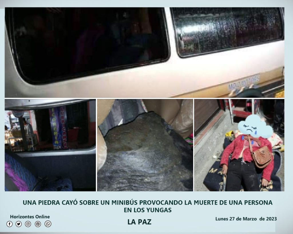 La piedra impactó sobre la humanidad de una mujer que responde al nombre de Zulema Apaza Mamani de 31 años de edad, docente de la Unidad Educativa de Tajma, Sud Yungas, misma que perdió la vida en el instante por el fuerte impacto.