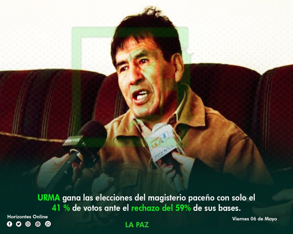 En las elecciones desarrolladas la jornada de hoy en el magisterio paceño el frente oficialista URMA gano las elecciones a la cabeza de José Luis Álvarez dirigente del magisterio paceño por más de 30 años consecutivos, quien paradójicamente criticó en 2019 la reelección de Evo Morales y la falta de renovación en las elecciones nacionales de ese año.